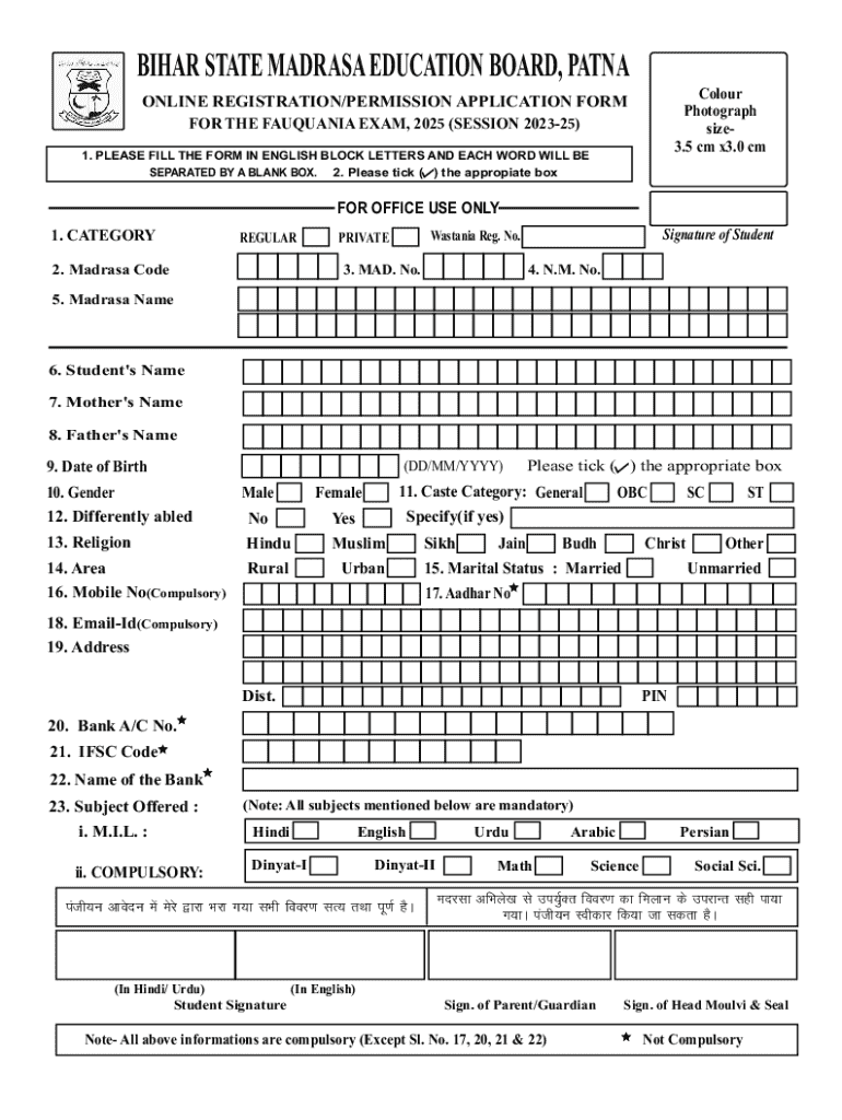Register for the Fauquania and Multi Exams 2025 with this online application form. Ensure all details are filled correctly for enrollment.