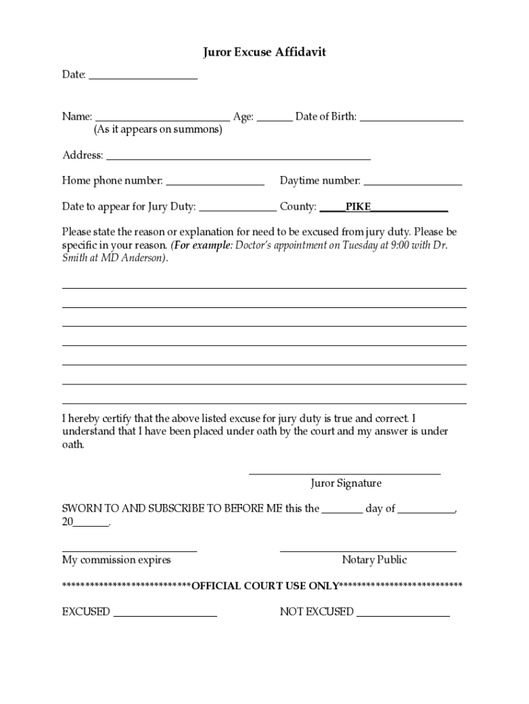 Get the free Juror Excuse Affidavit