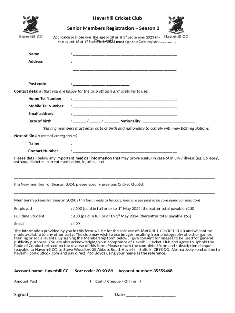 What is Haverhill Cricket Club Membership Form?