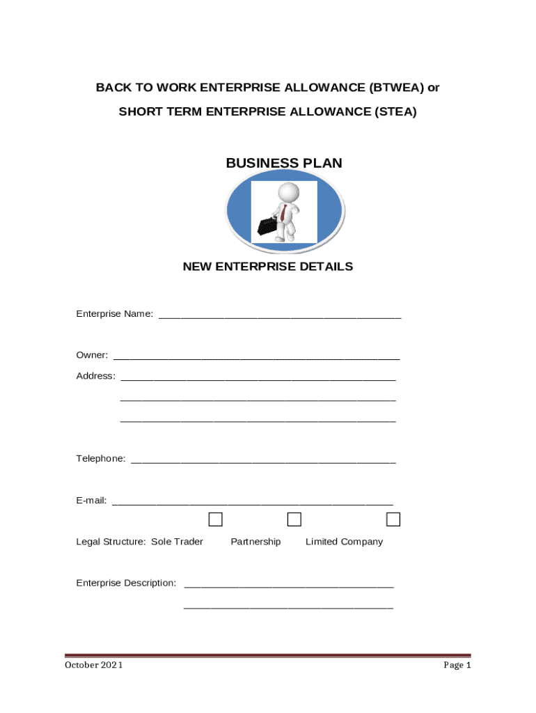 How to fill Business Plan for Back to Work Enterprise Allowance word template