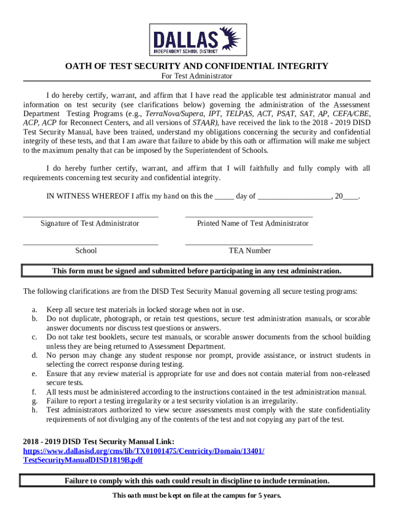 What is Oath of Test Security and Confidentiality for Instructional ... Form?