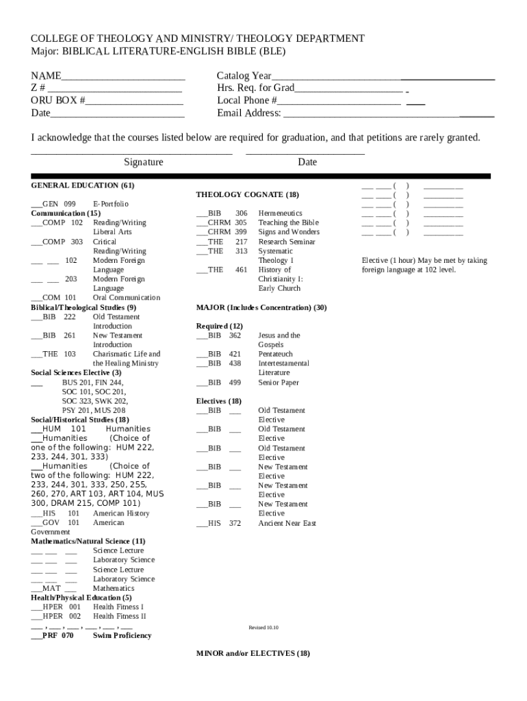 Bachelor of Theology and other courses for Ministry template instructions