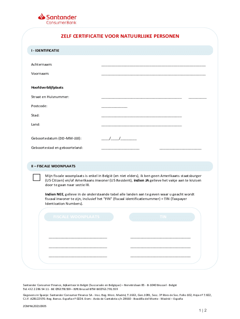 SELF CERTIFICATE POOR NATUURLIJKE PERSON EN