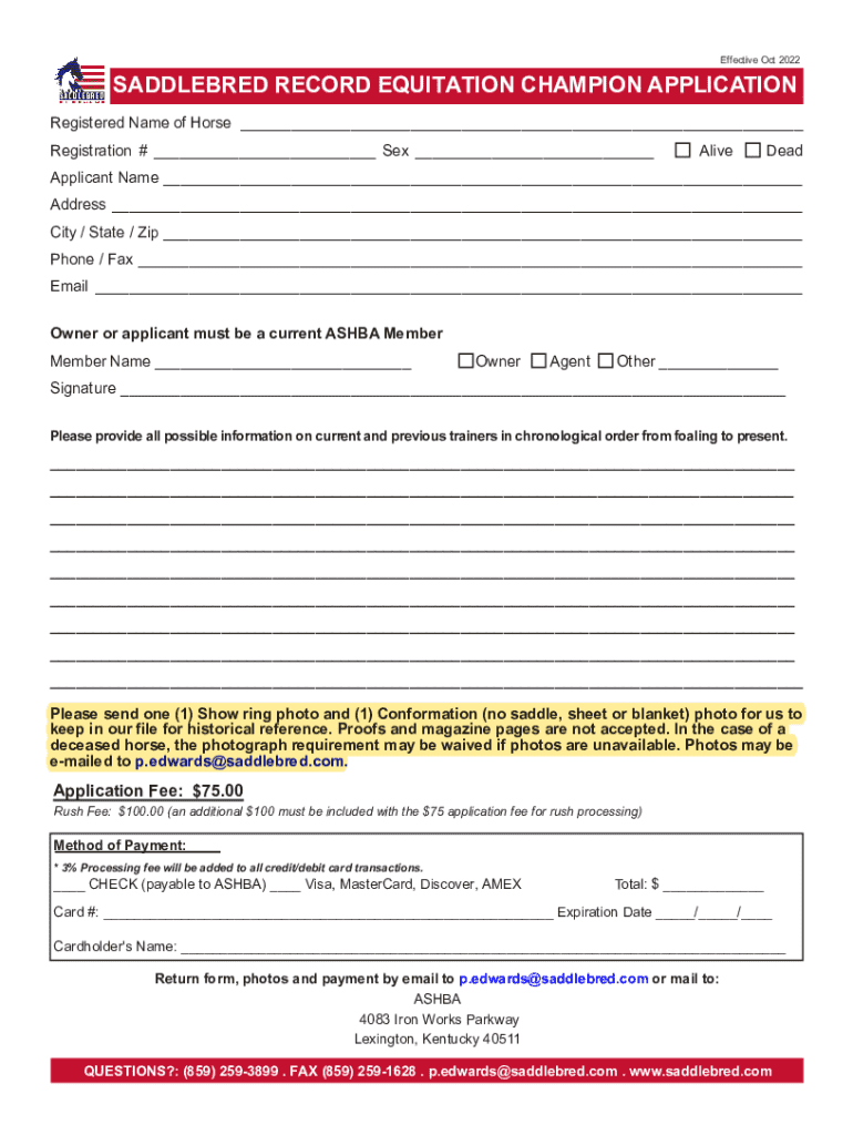 Effective Oct 2022SADDLEBRED RECORD EQUITATION CHAMPION APPLICATION