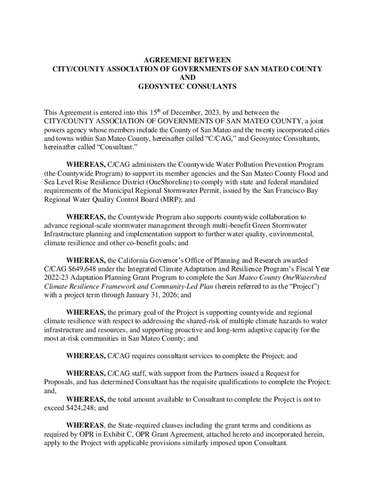 AGREEMENT BETWEEN CITY/COUNTY ASSOCIATION OF GOVERNMENTS OF SAN MATEO COUNTY AND TEOSINTE CONSULTANTS This Agreement is entered into this 15th of December 2023, by and between the CITY/COUNTY ASSOCIATION