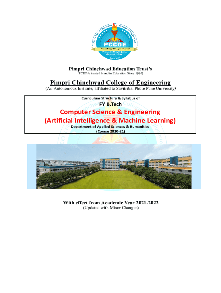 Pimpri-Chinchwad Education Trusts [SCETA trusted brand in Education Since 1990]Pimpri-Chinchwad College of Engineering (An Autonomous Institute, affiliated to Savitribai Thule Pune University) Curriculum