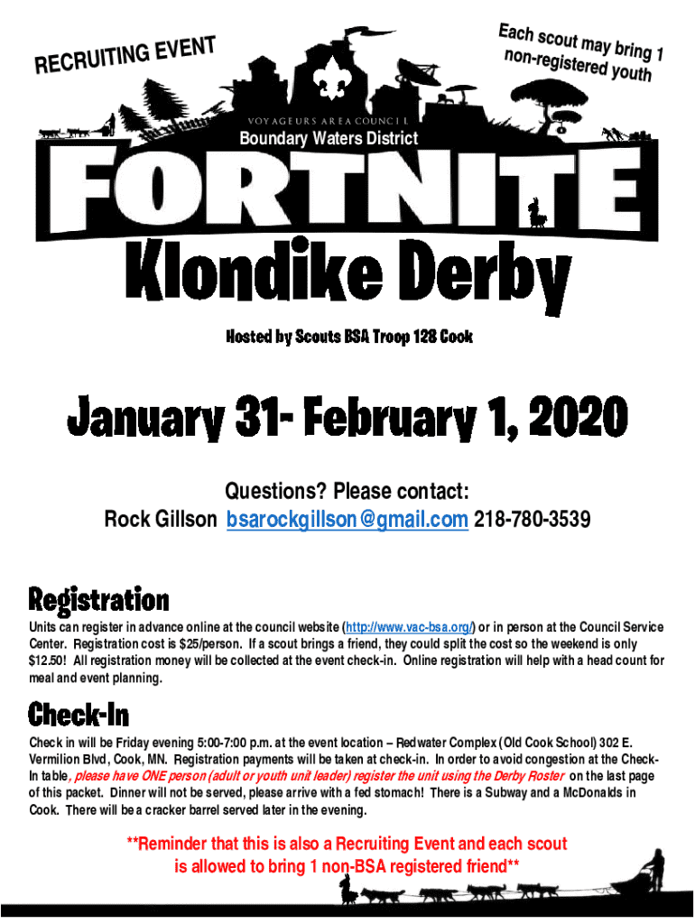 Obtain the event registration form from the Voyageurs Area Council website or office.