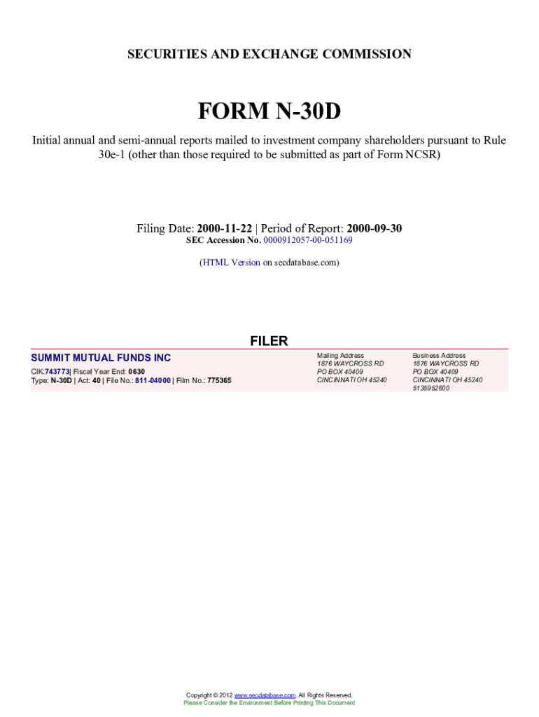 Get the free SUMMIT MUTUAL FUNDS INC (Form. Accession Number
