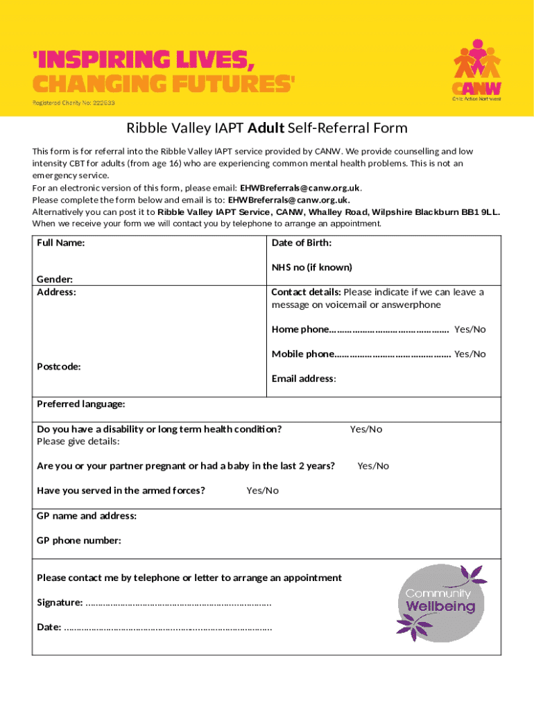 Template Self Referral - Wellbeing in the Ribble Valley instructions