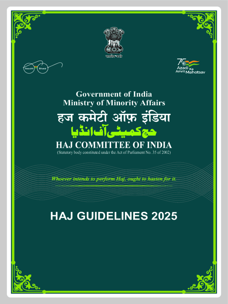 SwachhBharatGovernment of India Ministry of Minority Affairs(Statutory body constituted under the Act of Parliament No. 35 of 2002)HAJ GUIDELINES 2025Haj Application Form (HAF) can be lled and submitted online at hajcommittee.gov.in. or through Android or iphone Mobile App HAJ SUVIDHA from 13th August, 2024 to 09th September, 2024.MoMA8 9SAR SHI LWMState Haj Inspector Ladies Without MehramIMPORTANT INSTRUCTION: Haj is an arduous and strenuous pilgrimage involving walking