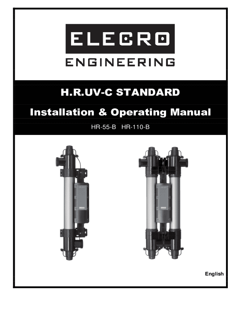 H.R.UVC STANDARD Installation & Operating Manual HR55B HR110BEnglishCONTENTS IMPORTANT NOTES ...............................................................................................................................3
