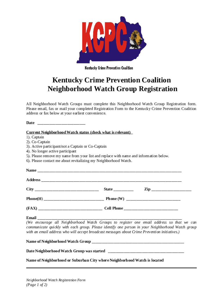 Frequently asked questions about the form Neighborhood Watch - Kentucky Crime Prevention Coalition