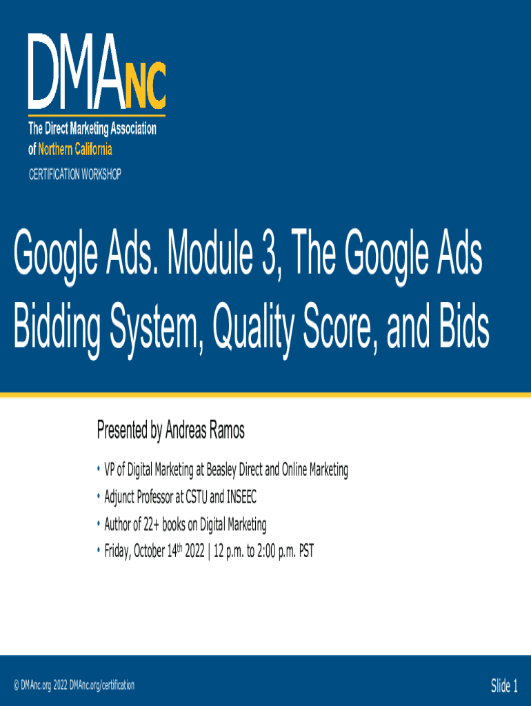 Get the free Google Ads. Module 3, The Google Ads Bidding System, ...