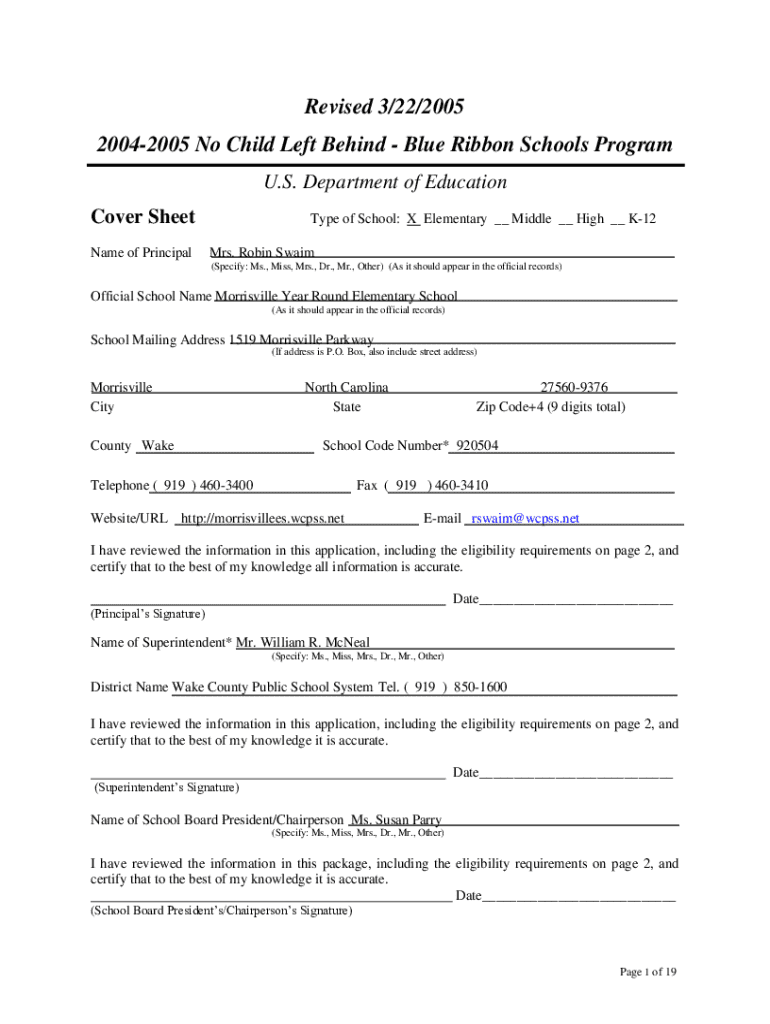Get the free No Child Left Behind - Blue Ribbon Schools Program Application
