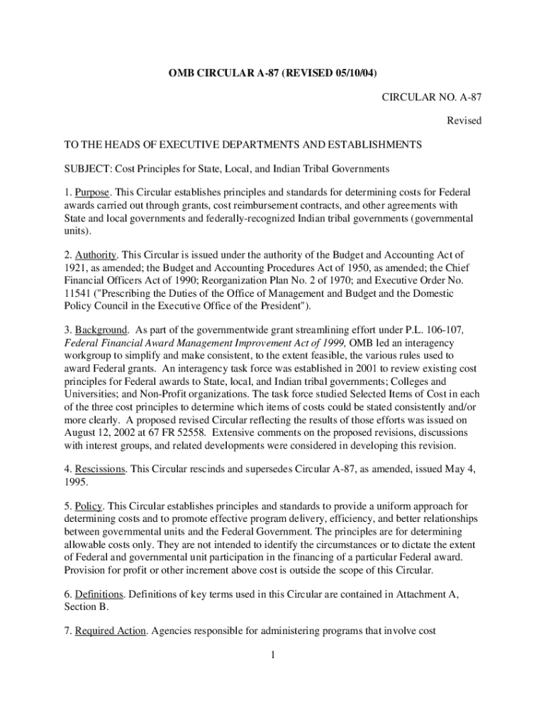 Get the free OMB Circular A-87: Cost Principles for State, Local, and ...