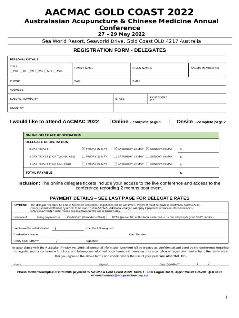 Instructions for the Aacmac Gold Coast 2022 Registration form