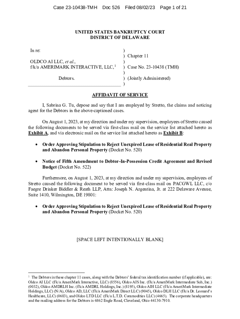 Get the free OLDCO AI LLC, et al., f/k/a AMERIMARK ... - Stretto