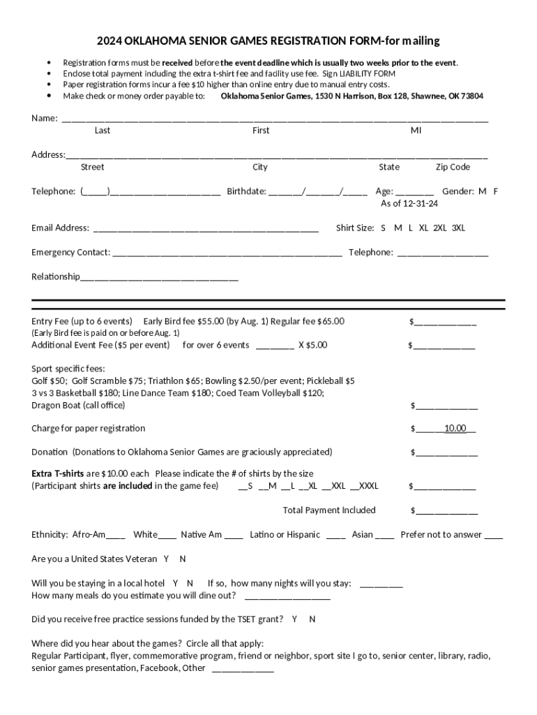 Frequently asked questions about the form Oklahoma Senior Games Registration