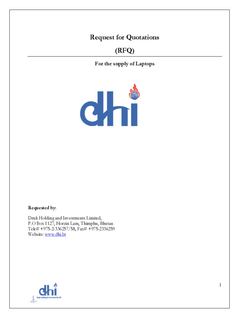 Druk Holding invites quotes for laptop supply. Bids due by September 29, 2020. Visit tender.bt for registration and guidelines.