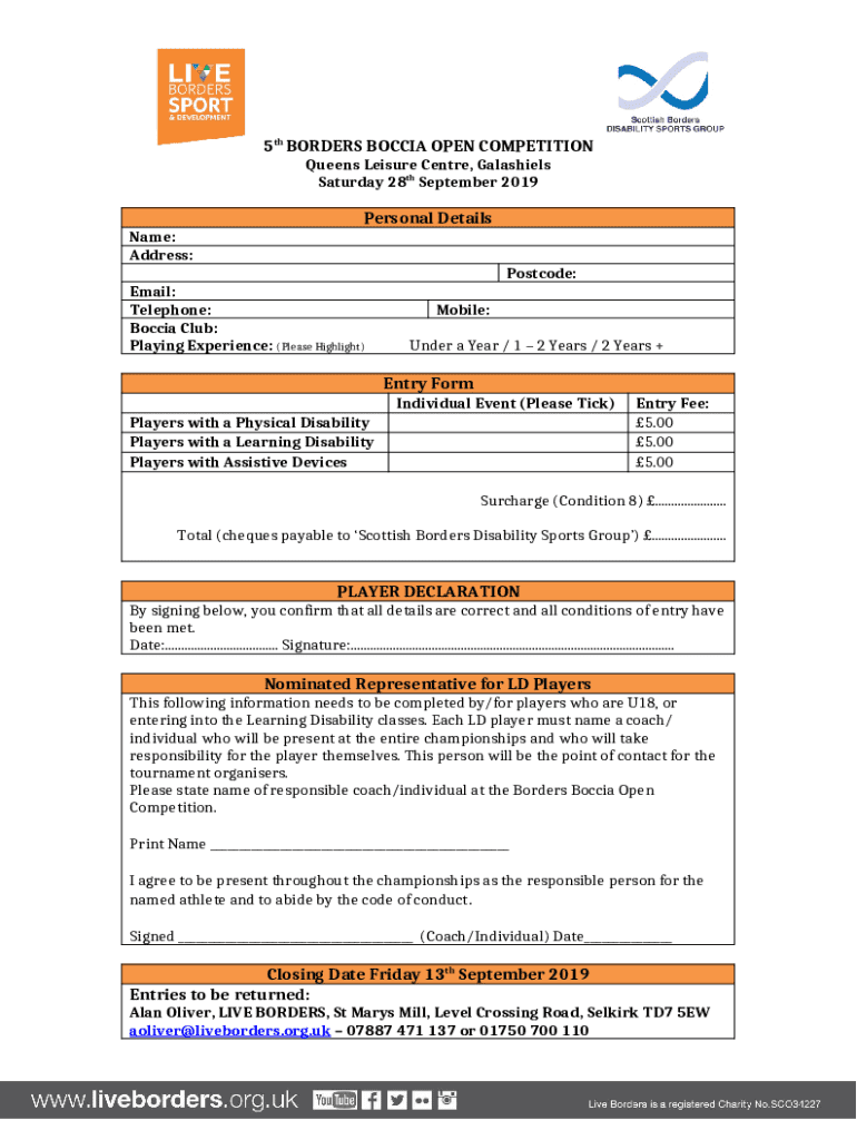 What is 5th Borders Boccia Open Competition Entry Form?
