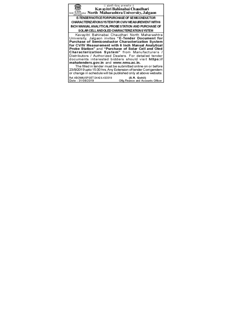 North Maharashtra University, JalgaonETENDER NOTICE FOR PURCHASE OF SEMICONDUCTOR