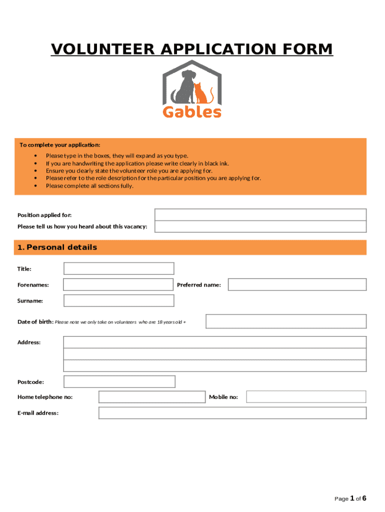 Instructions for the Volunteer Application form