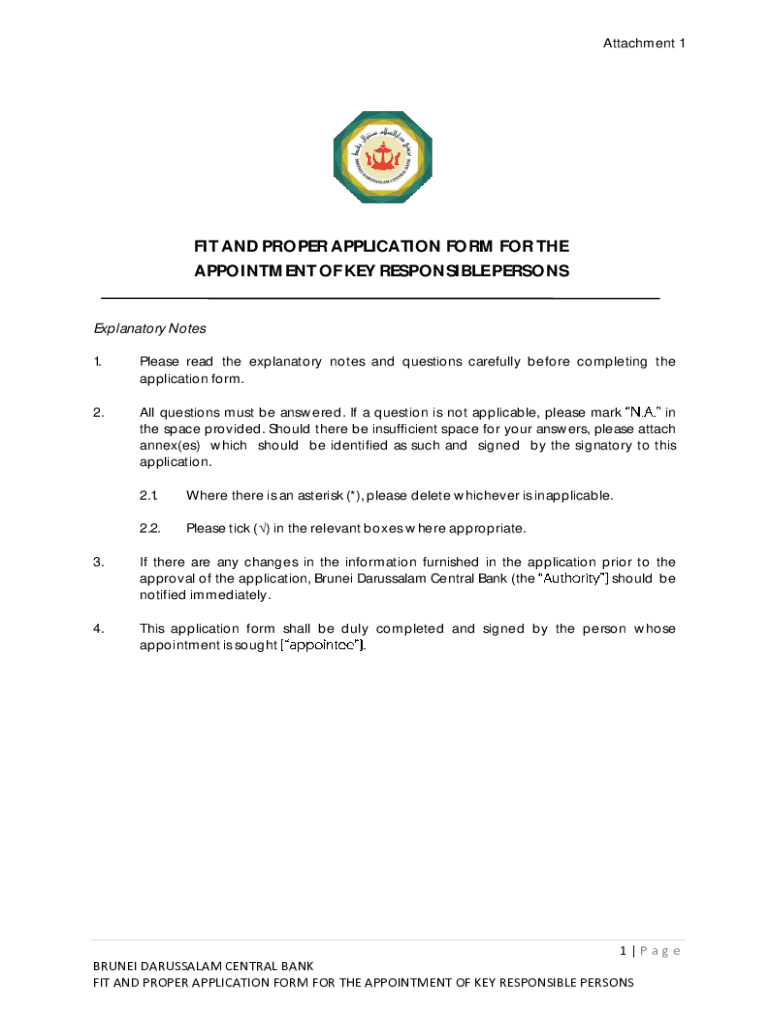 Attachment 1FIT AND PROPER APPLICATION FORM FOR THE APPOINTMENT OF KEY RESPONSIBLE PERSONS Explanatory Notes 1. Please read the explanatory notes and questions carefully before completing the application