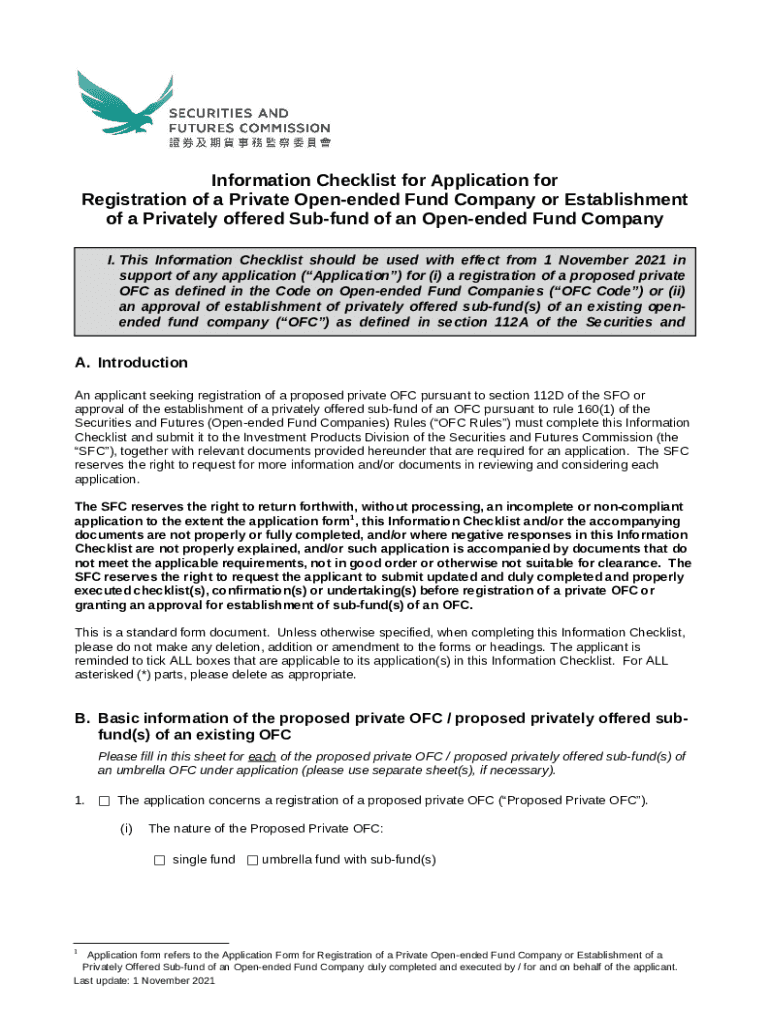 What is Ination Checklist for Application for Registration of a Private Open-ended Fund Company Form?