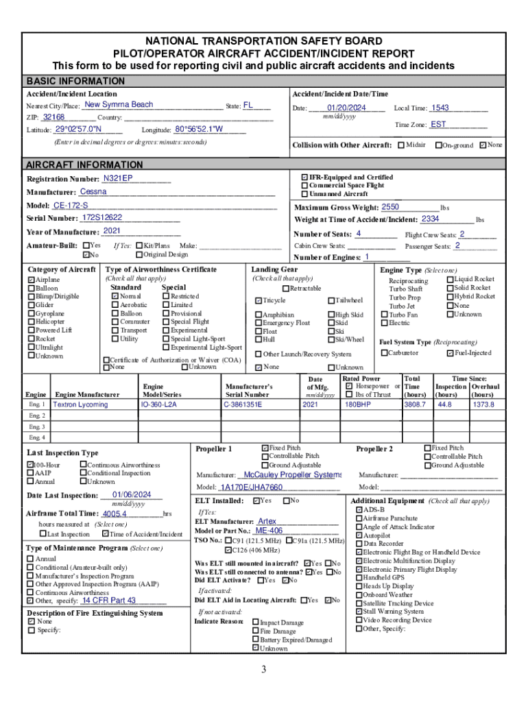 FORM APPROVED FOR USE THROUGH 4/30/2018 BY OMB NO. 1NATIONAL TRANSPORTATION SAFETY BOARD NTSB Form 6120.1 PILOT/OPERATOR AIRCRAFT ACCIDENT/INCIDENT REPORT INSTRUCTIONS TO PILOTS/OPERATORS FOR COMPLETING