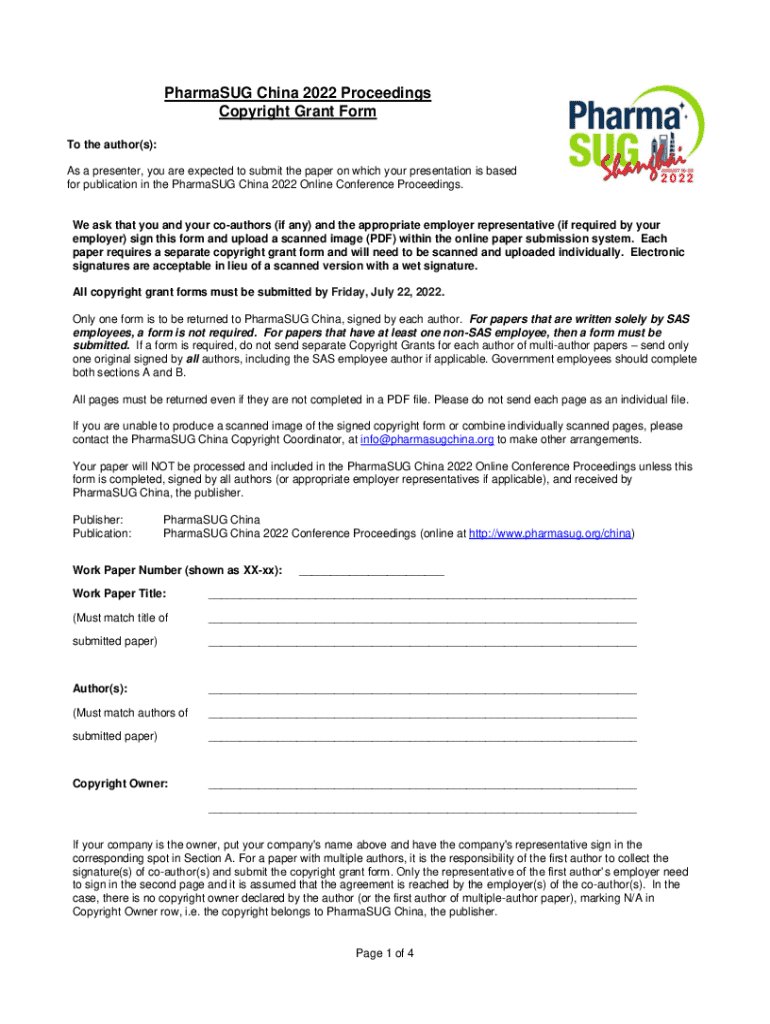 Pharmacy China 2022 Proceedings Copyright Grant Form To the author(s): As a presenter, you are expected to submit the paper on which your presentation is based for publication in the Pharmacy China