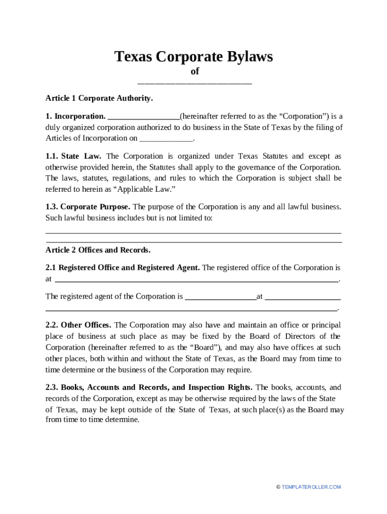What is Texas Corporate Bylaws Form?