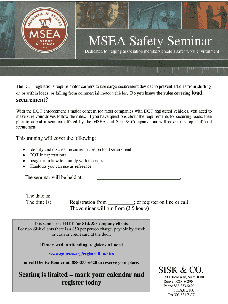 SEA Safety Seminar Dedicated to helping association members create a safer work environment The DOT regulations require motor carriers to use cargo securement devices to prevent articles from shifting
