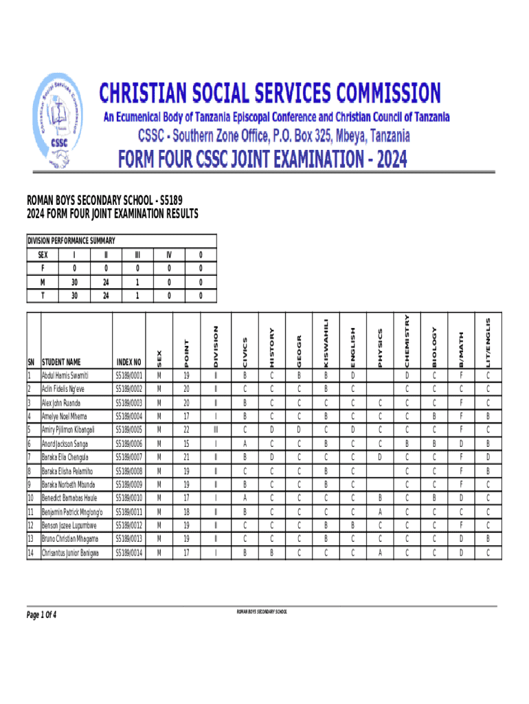 ROMAN BOYS SECONDARY SCHOOL S5189 2024 FORM FOUR JOINT EXAMINATION RESULTS Page 1 Of 4C C C C D C D C C C C C C BB C C C D C C C C C C C C CB B C B C B C B B C C B CD C C C D C C C C C C B CC ROMAN