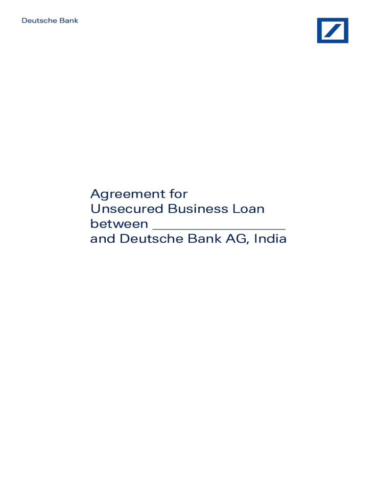 This document outlines the terms and conditions for an unsecured business loan provided by Deutsche Bank AG, India, detailing loan amount, interest rates, repayment terms, and borrower obligations.