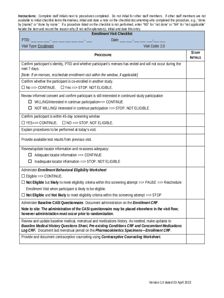Enrollment Visit Checklist template instructions