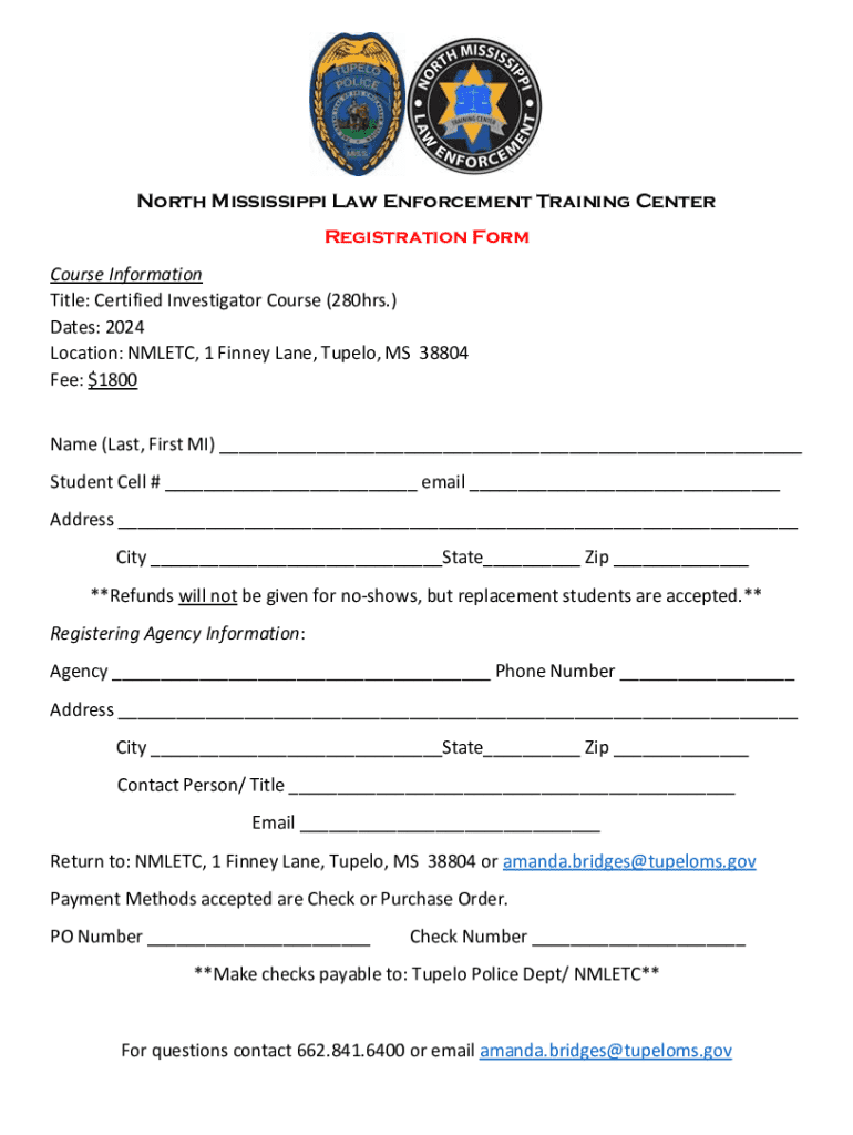 Obtain the necessary forms from the North Mississippi Law Enforcement office or website.