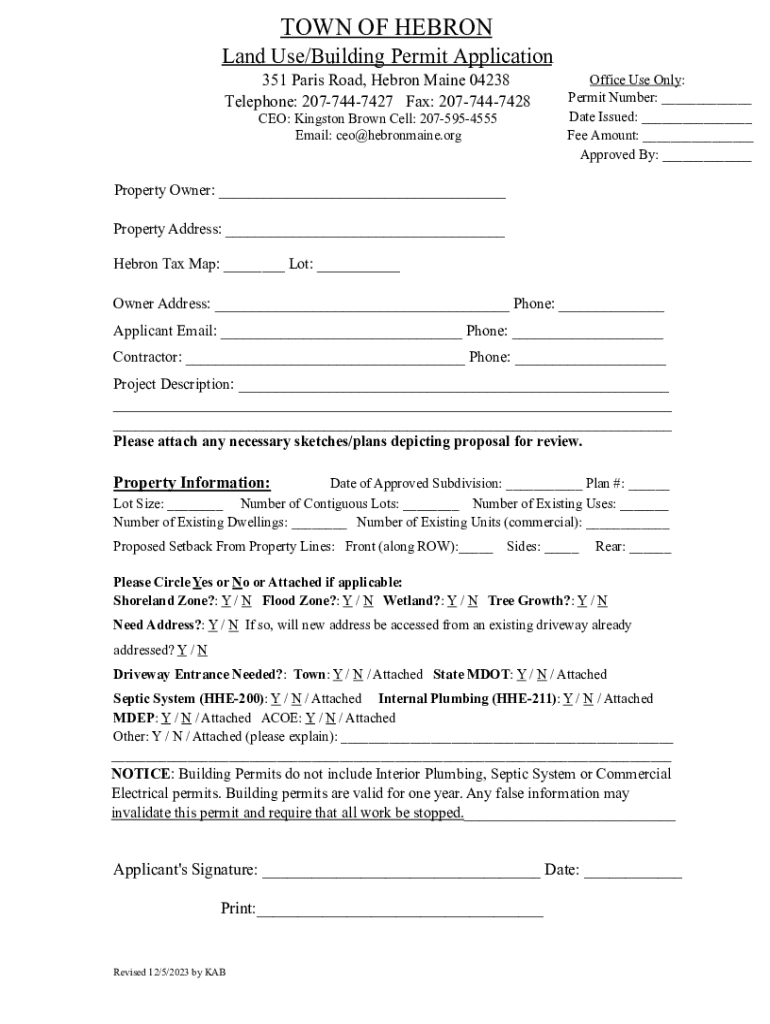 Anyone who is planning to make changes to a property such as constructing a new building, renovating an existing structure, or changing the land use designation will need to fill out a land use/building permit application.