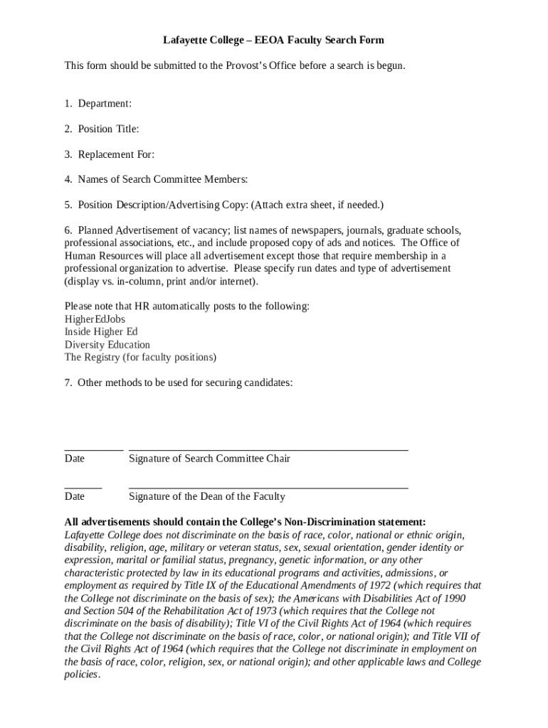 Instructions for the Recruitment Search Process - Human Resources - provost lafayette form