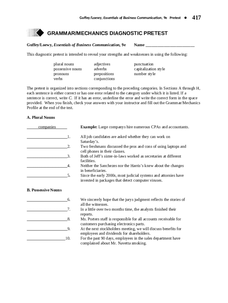Instructions for the form Grammar and Mechanics Handbook Overview Study Guide