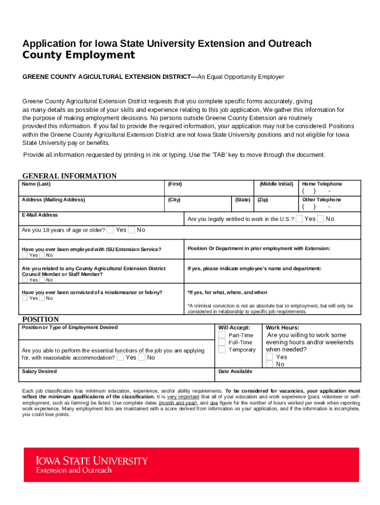 How to fill Application for Iowa State University Extension and Outreach County Employment word template