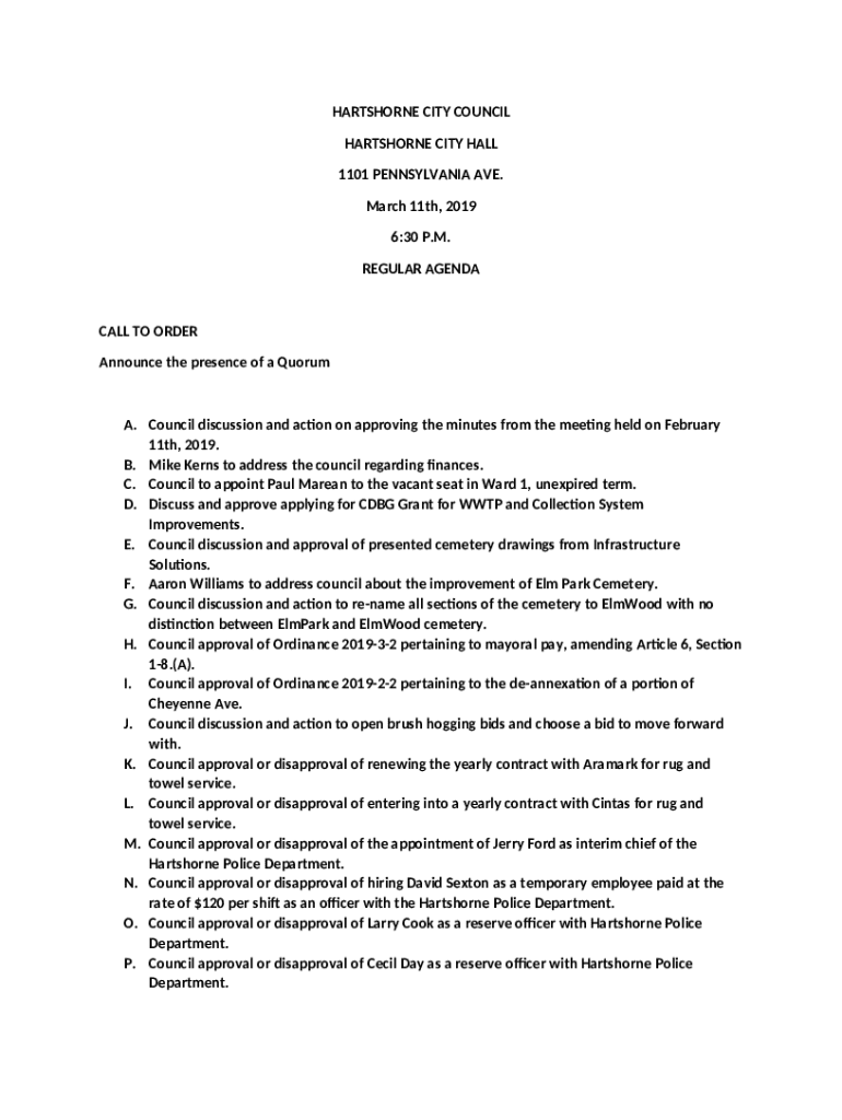 Template AgendasCity of Hartshorne Oklahoma instructions