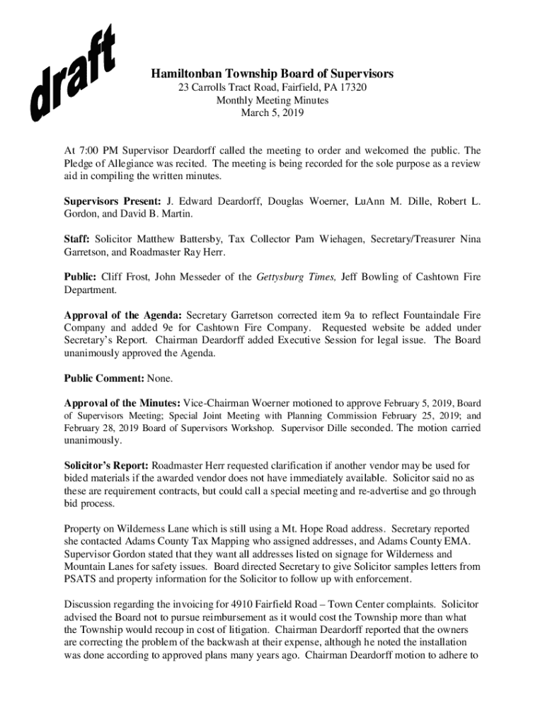 March 5, 2019At 7:00 PM Supervisor Hausdorff called the meeting to order and welcomed