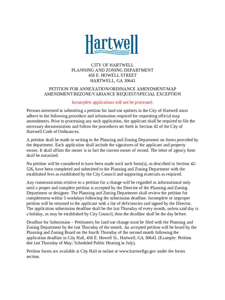 Instructions for the form Official Zoning Map of the City of Hartwell, Georgia