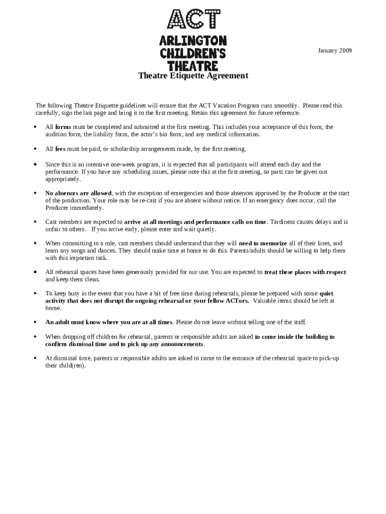 What is Theater Etiquette Agreement Form?