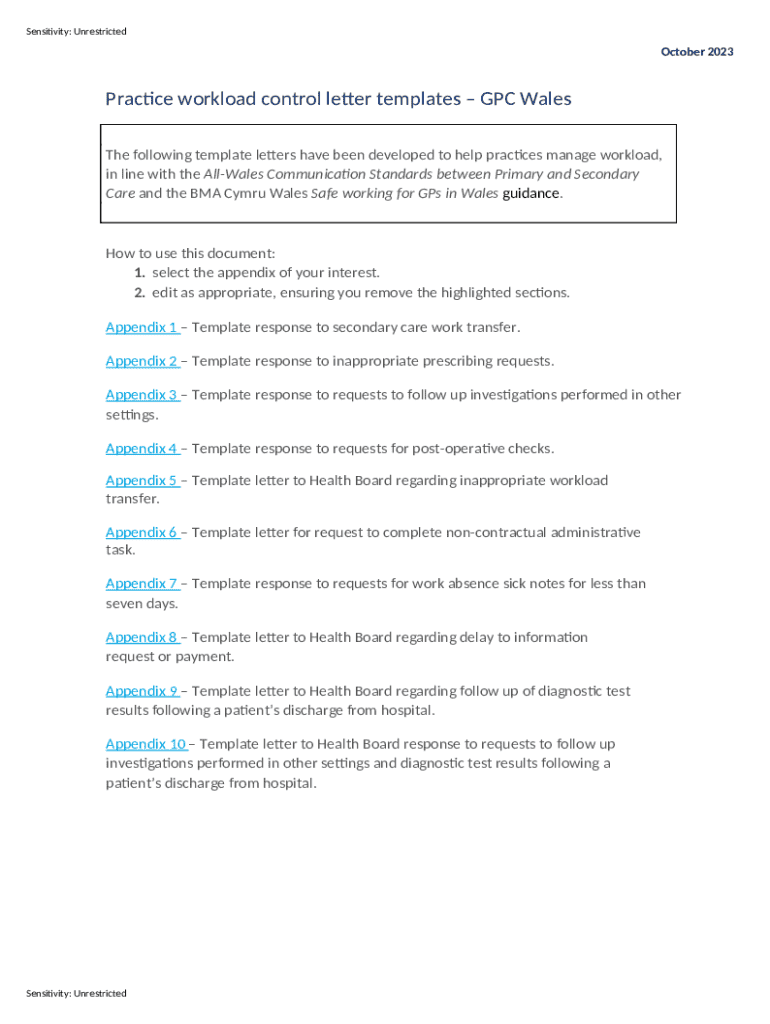 The Practice Workload Control Letter Templates is a document that can be filled-out and signed for certain reasons. In that case, it is provided to the exact addressee in order to provide specific details and data. The completion and signing is able or using a trusted solution e. g. PDFfiller. Such applications help to submit any PDF or Word file without printing out. It also allows you to edit it according to your needs and put legit e-signature. Once finished, the user sends the Practice Workload Control Letter Templates to the respective recipient or several recipients by email and even fax. PDFfiller has got a feature and options that make your Word template printable. It provides a variety of settings for printing out. It does no matter how you'll deliver a document - physically or electronically - it will always look professional and organized. To not to create a new editable template from scratch over and over, make the original Word file into a template. Later, you will have a customizable sample.
