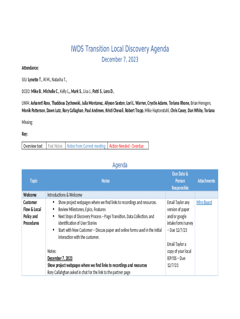 How to fill Iwds Transition Local Discovery Agenda word template