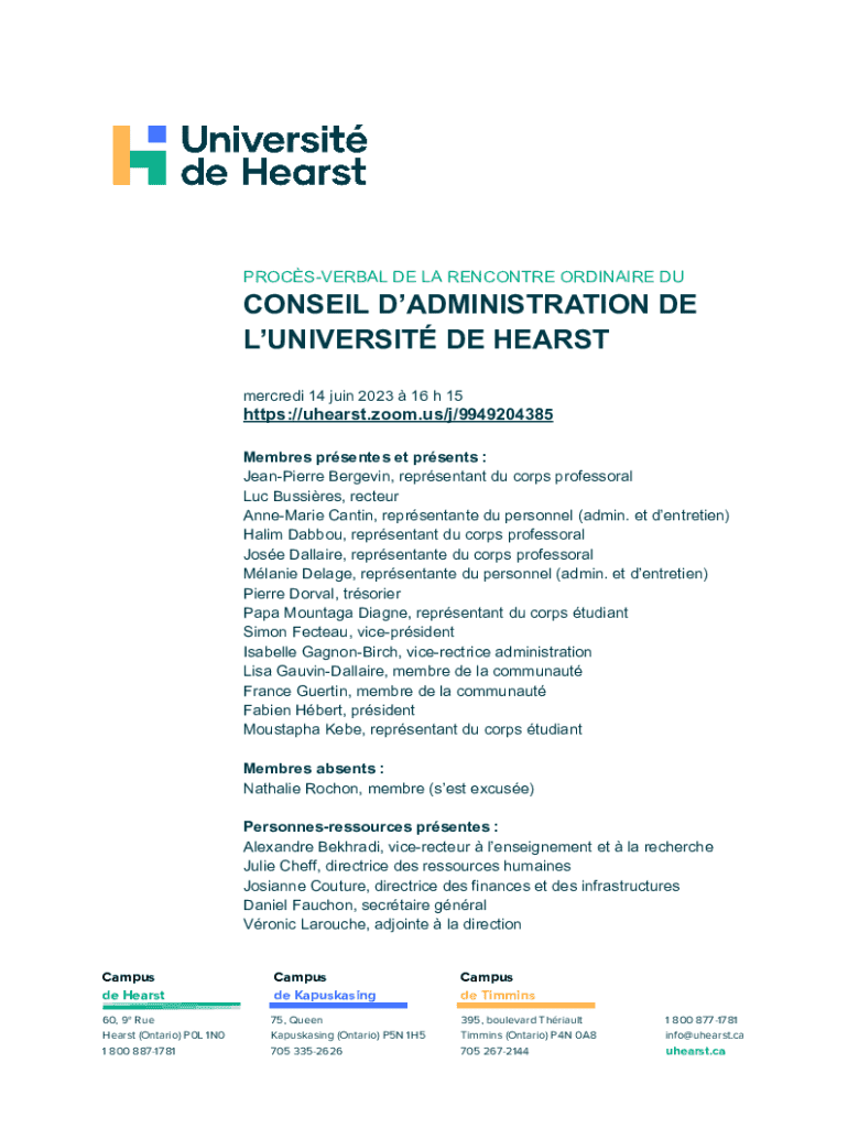PROCÈS-VERBAL DE LA ENCORE ORDINARY DUCONSEIL ADMINISTRATION DE