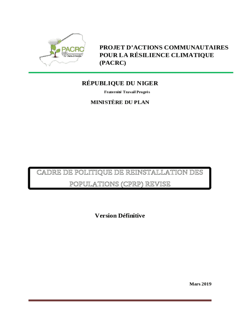 What is Cadre de procedures de reinstallation des populations du ... Form?