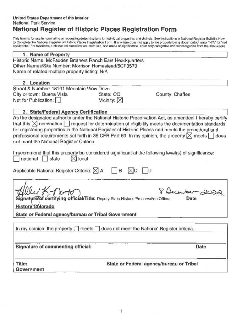 Get the free National Register of Historic Places Registration Form