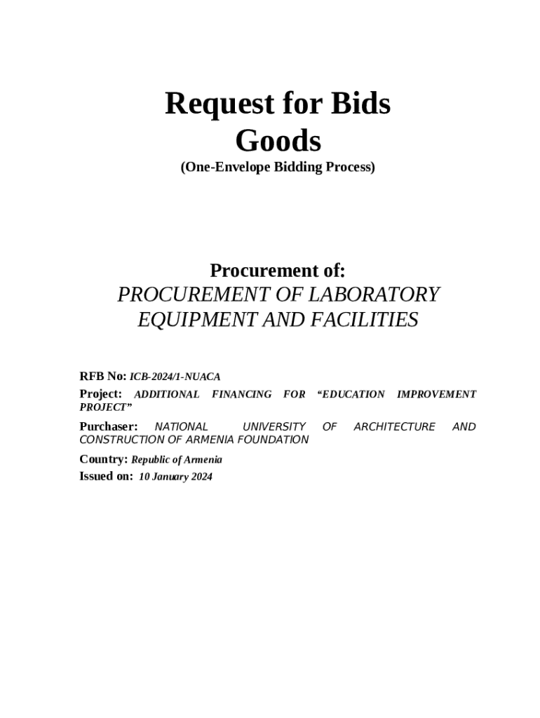Instructions for the PROCUREMENT OF LABORATORY EQUIPMENT AND FACILITIES form